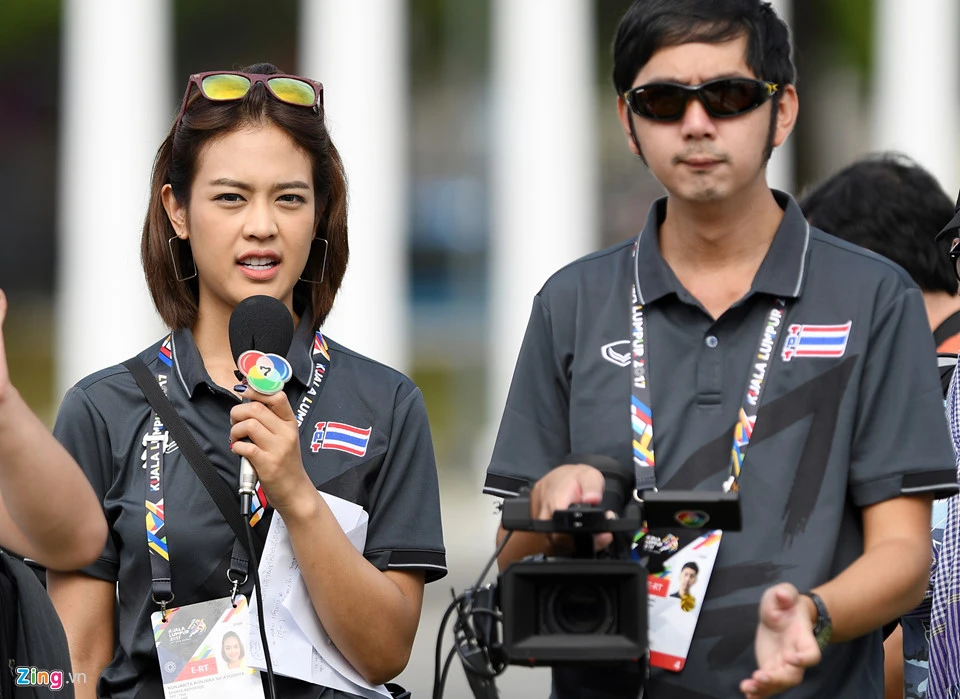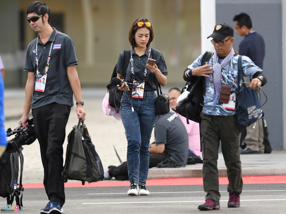 Tuy nhiên nữ phóng viên người Thái Lan tỏ ra khá hoạt bát, năng động với giày vải, quần jeans, áo phông... Cô đến từ khá sớm trước lễ thượng cờ, tự mình ghi hình tư liệu quang cảnh xung quanh bằng chiếc camera mini.