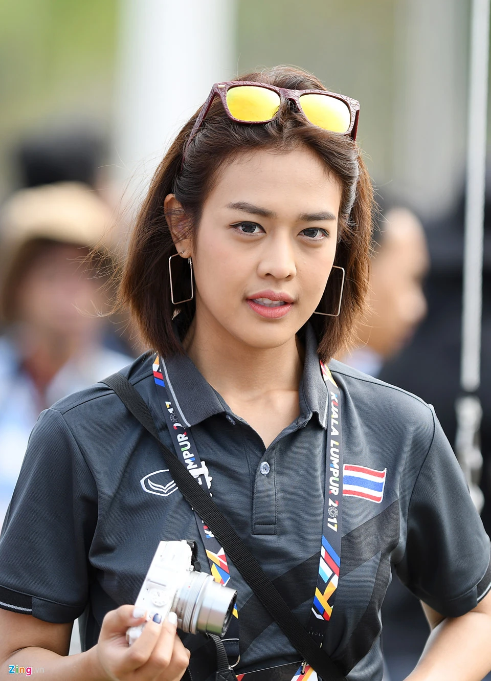 Người đẹp đến từ Thái Lan cũng không quên nhờ đồng nghiệp lưu giữ cho mình những bức ảnh kỷ niệm tại sân vận động lớn nhất của SEA Games 29.