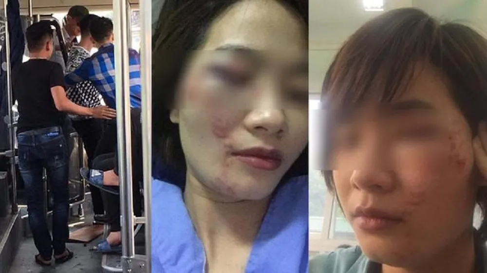 Nữ phụ xe đưa tay ra đỡ thì bị ba thanh niên còn lại xông vào hành hung. Cả nhóm tấn công chị H., mặc cho tài xế và hành khách có lời can ngăn.