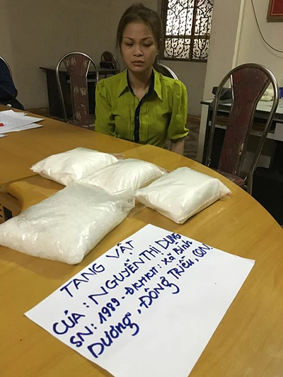 Theo đó, lực lượng công an đã bắt quả tang Nguyễn Thị Dung (sinh năm 1989, thôn Hoàng Xá, xã Bình Dương, huyện Đông Triều, Quảng Ninh) về hành vi vận chuyển trái phép chất ma túy.