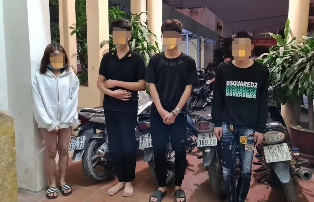 Nữ sinh có hành vi lạng lách, đánh võng là PTMT (16 tuổi, trú xã Đoàn Xá, huyện Kiến Thụy) điều khiển xe mô tô BKS 15B1-31... 3 nam sinh khác gồm NVM (17 tuổi, trú phường Hòa Nghĩa, quận Dương Kinh) điều khiển xe gắn máy BKS 15AA-06.., THPL (15 tuổi) và HMN (16 tuổi, cùng trú huyện Kiến Thụy) điều khiển xe gắn máy BKS 15AE-02.. chở theo 1 nam sinh khác.