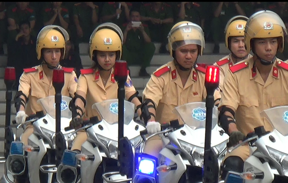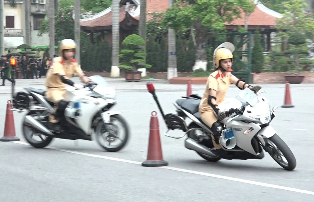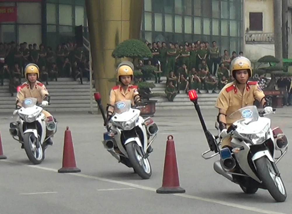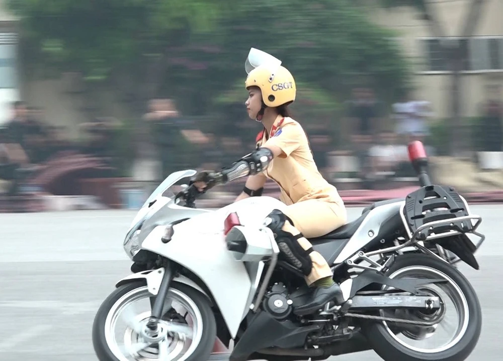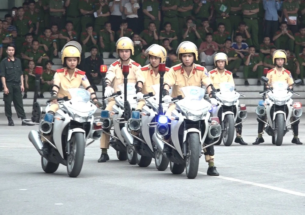 Trong những nội dung này, phần biểu diễn kỹ thuật lái xe mô tô phân khối lớn diễn ra hấp dẫn. Đặc biệt, sự xuất hiện của một nữ sinh trong đội hình mô tô đặc chủng nhận được nhiều sự chú ý của người xem.
