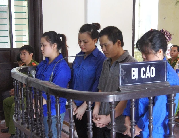 Bị cáo Đặng Thị Thải Hương và Nguyễn Thị Hồng Ngọc (con gái đầu của Hương) cùng các bị cáo Hoàng Văn Yên, Lê Thị Kim Liên tại phiên tòa. Ảnh: Đ.LAM
