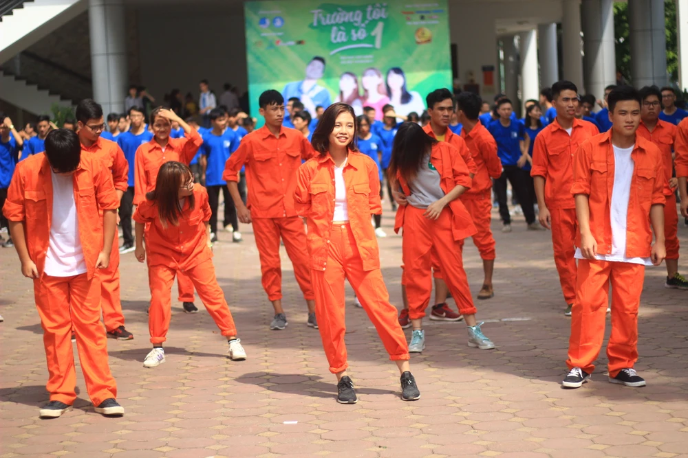 Trước đó, Á Hậu cũng nhảy cùng sinh viên Đại học Xây Dựng.