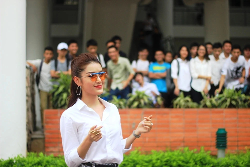 Á Hậu Huyền My cũng thu hút sự chú ý của các bạn sinh viên.
