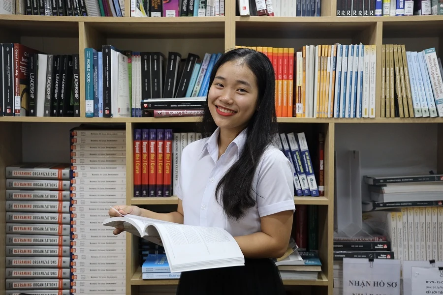 Duyên cũng cho biết em vừa bất ngờ vừa lo lắng vì nhà trường dạy học hoàn toàn bằng tiếng Anh, trong khi điểm yếu nhất của em lại là tiếng Anh. Ở phổ thông, học lực môn tiếng Anh của em thậm chí ở top thấp của lớp.