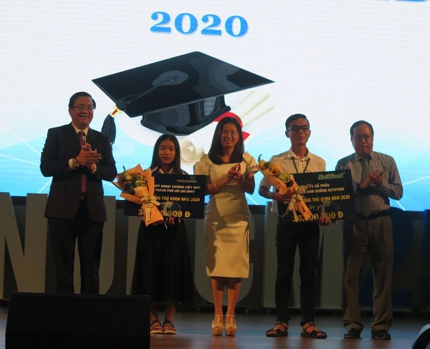 Ba thủ khoa của trường nằm trong số tân sinh viên dành được học bổng toàn phần, đồng thời mỗi em cũng nhận được khen thưởng 30 triệu đồng từ nhà tài trợ.