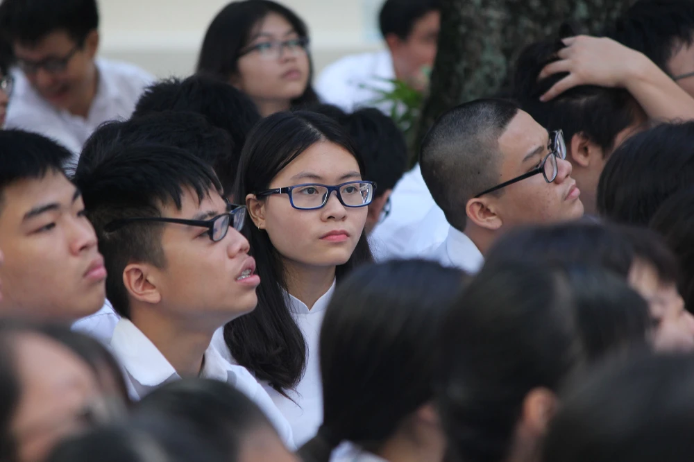Nữ sinh THPT Lê Hồng Phong duyên dáng ngày khai trường.