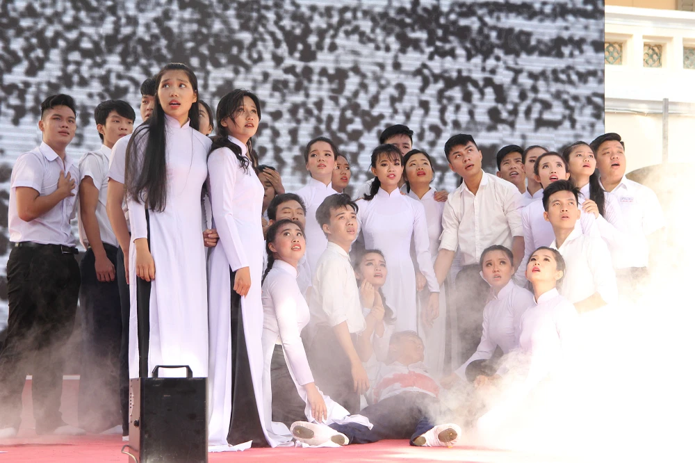 Một tiết mục văn nghệ chào mừng 90 năm thành lập trường THPT chuyên Lê Hồng Phong.