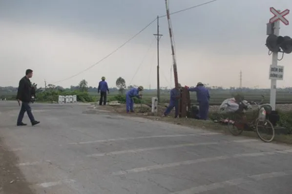 Đoạn đường sắt Bắc-Nam giao nhau với quốc lộ 7A.