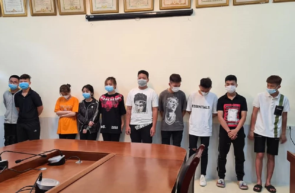 Nhóm "quái xế" tại cơ quan công an. Ảnh: TP