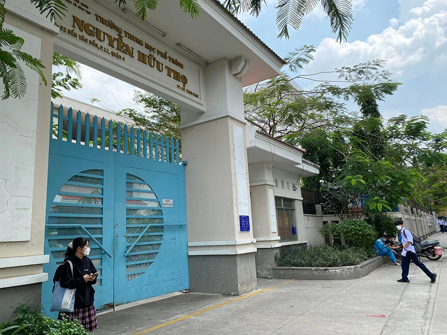 Trường THPT Nguyễn Hữu Thọ, quận 4 nơi xảy ra vụ việc. Ảnh: Nguyễn Tân