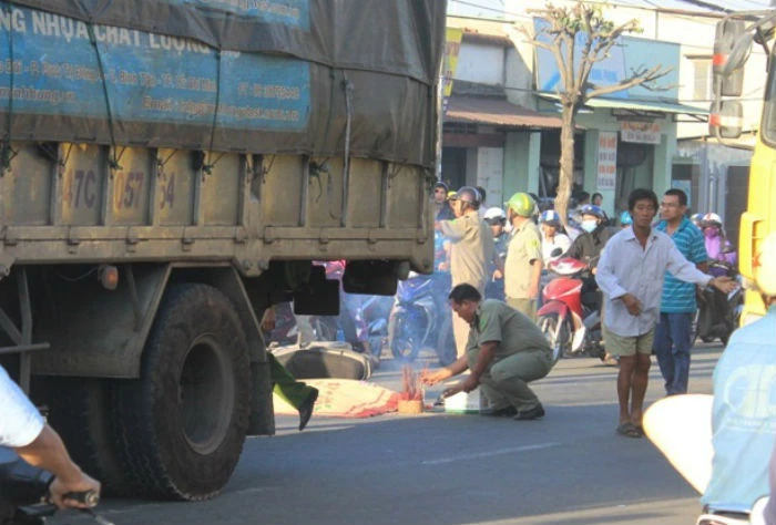 Cú va chạm khiến chiếc xe máy của ông Thắng bị ngã xuống đường, nữ sinh Tâm (học lớp 11) bị bánh sau của chiếc xe tải cán qua tử vong tại chỗ. Ông Thắng và Trần Thanh Trúc may mắn thoát chết. Nhiều người dân theo dõi sự việc không khỏi xót xa khi thấy cảnh nữ sinh nằm bất động.