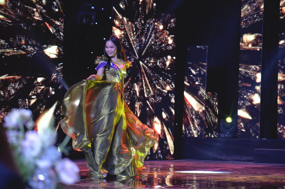 Tô Hồng Phương trong trang phục dạ hội đêm chung kết. Ảnh: NGUYỄN TRÀ