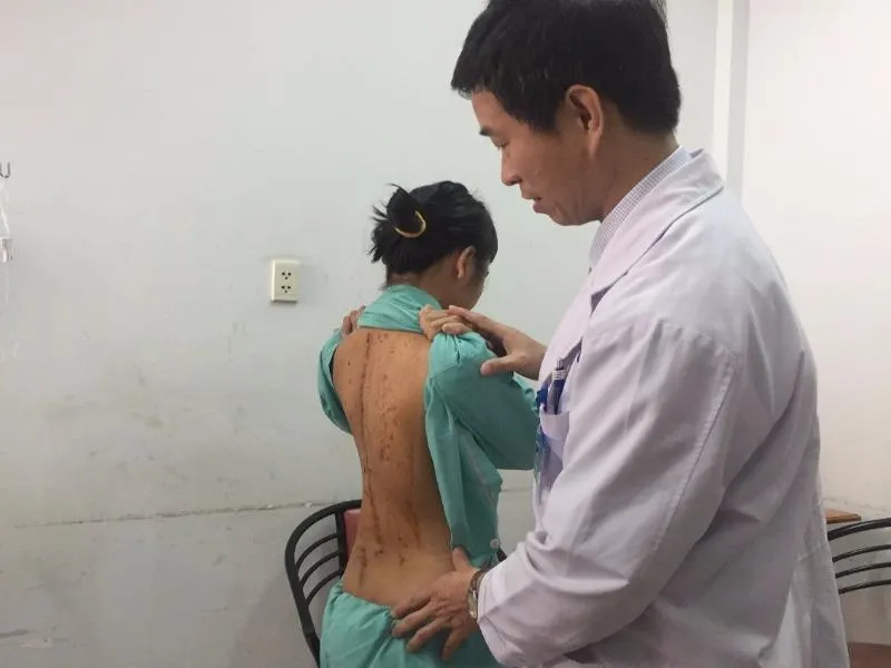 Nữ sinh sau khi được nắn chỉnh cột sống. Ảnh: H.LAN