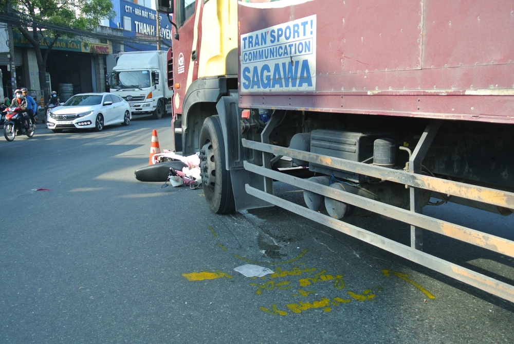 Khoảng 7 giờ sáng nay, ô tô tải 50LD-102.69 chạy trên đại lộ Độc Lập hướng từ Quân đoàn 4 về quốc lộ 1. Khi tới dưới gầm cầu vượt Sóng Thần (Dĩ An, Bình Dương), tài xế vừa cho xe ôm cua để lên quốc lộ 1 thì xảy ra va chạm với xe máy 61CA-003... do một nữ sinh điều khiển cùng chiều.