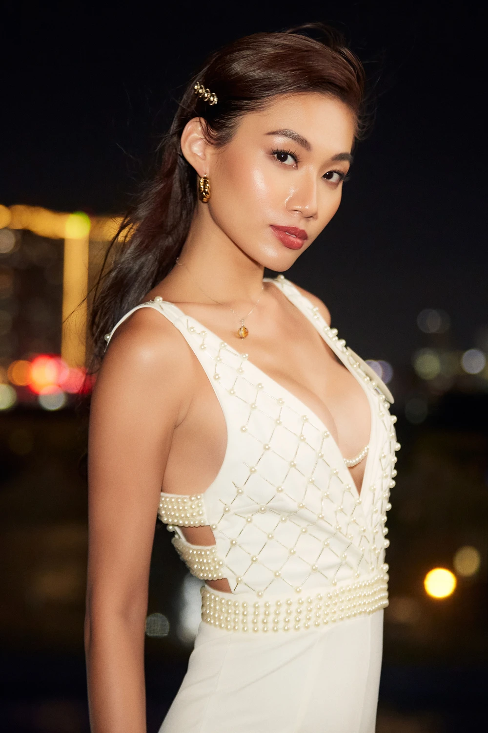 Vũ Mỹ Ngân (SBD 136) sở hữu chiều cao 1m82, là một trong những thí sinh cao nhất trong Top 70. Trước đó, người đẹp Quảng Ninh từng dự thi Hoa hậu Việt Nam 2020 và vào Top 40 chung cuộc
