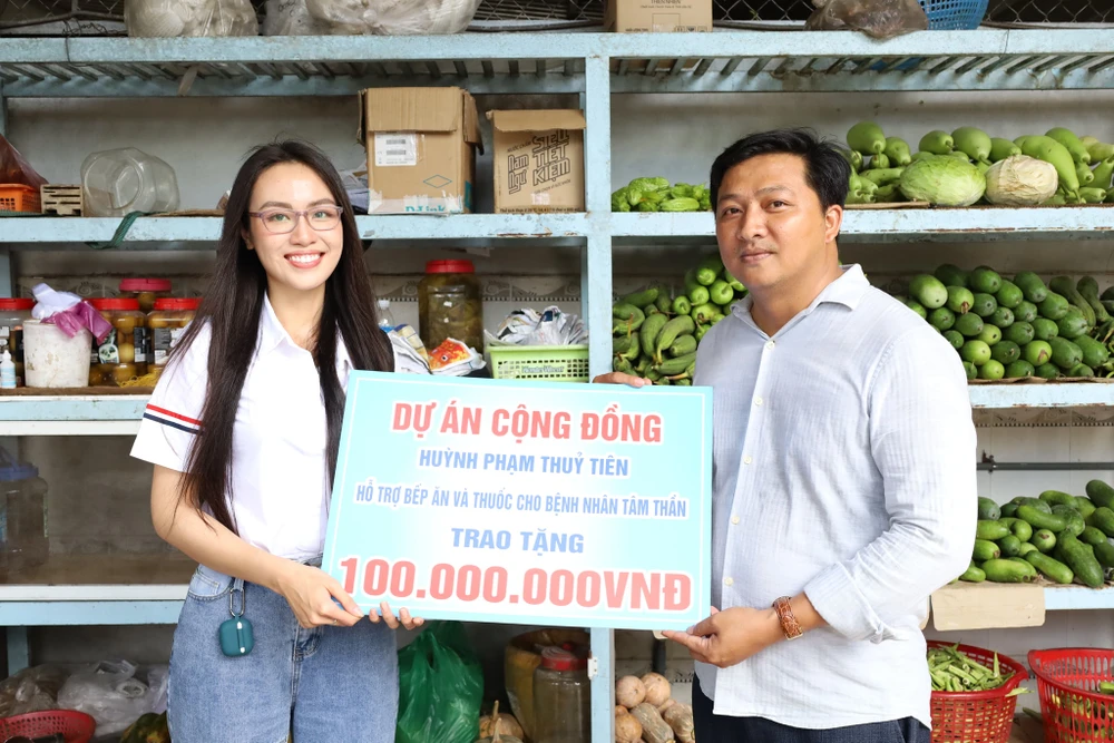 Thủy Tiên thực hiện Dự án cộng đồng Hỗ trợ Bếp ăn, thuốc cho bệnh nhân tâm thần và Tiếp sức cho học sinh có hoàn cảnh khó khăn đến Trường tại phường Tân Phú - quận Cái Răng. Ảnh: FBNV