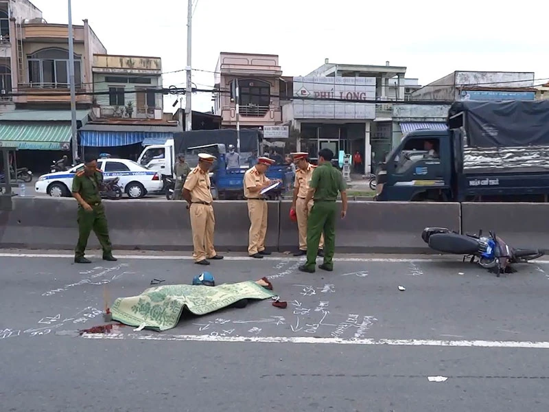 Tại hiện trường, hai xe máy và thi thể nữ sinh viên nằm trên làn ô tô, xe máy của nam thanh niên nằm sát dải phân cách giữa đường. Vụ tai nạn khiến giao thông trên quốc lộ 1 bị ùn ứ kéo dài.