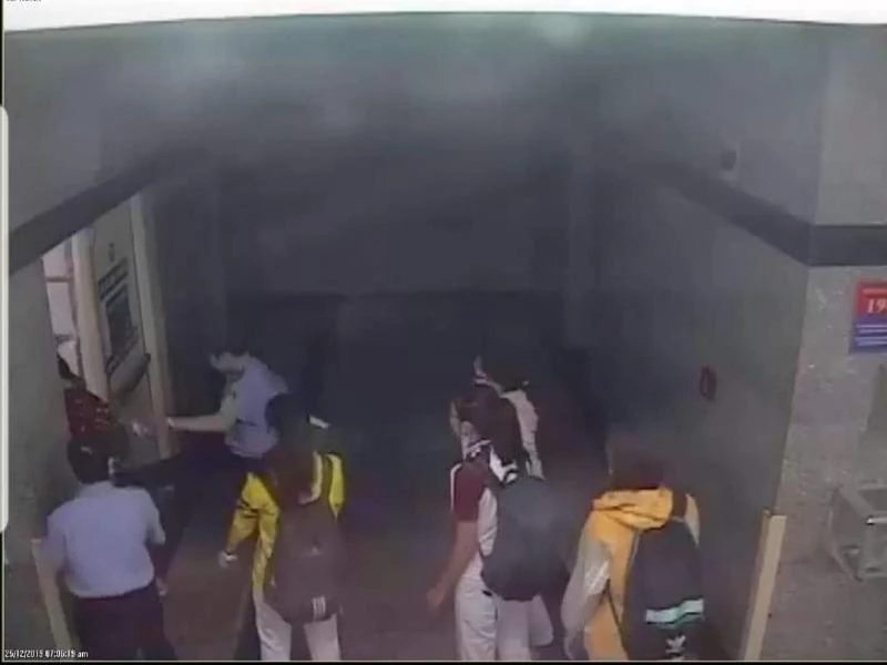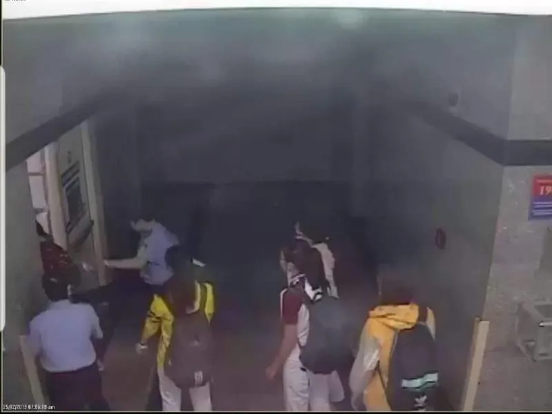 Hai bên đôi co qua lại, sợ bị đánh tiếp nên bốn sinh viên theo bảo vệ đến phòng bảo vệ. Theo Tiên, tại phòng làm việc, nữ bảo vệ đóng cửa để các em ngồi chờ phòng hành chính xuống lập biên bản và đứng canh phía ngoài cửa. Sợ trễ giờ thi, Tiên gọi điện thoại nhờ cán bộ coi thi xuống xin để đi thi nhưng vẫn không được chấp nhận.