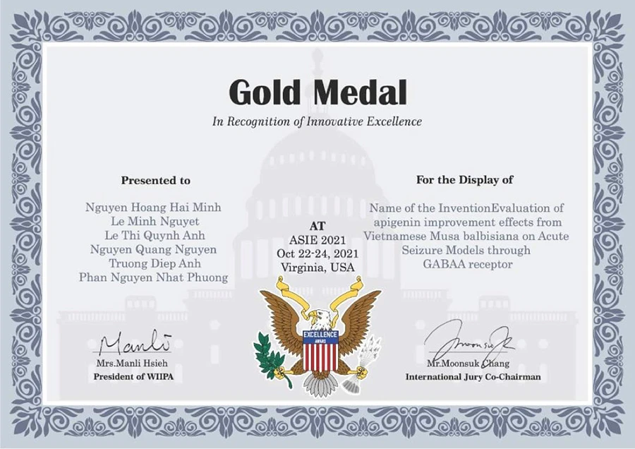 Mới đây, Phan Nguyễn Nhật Phương (lớp 12 A14, trường THPT Vũng Tàu) cùng với nhóm bạn tại Hà Nội đã tham gia và đạt giải Vàng tại cuộc thi “Triển lãm Khoa học và Sáng chế Hoa Kỳ” (ASIE) do tổ chức AZSCIENCES và Hiệp hội Sở hữu Trí tuệ Thế giới (WIIPA) tại Virginia, Hoa Kỳ tổ chức với đề tài nghiên cứu trong lĩnh vực y sinh và khoa học sức khỏe.