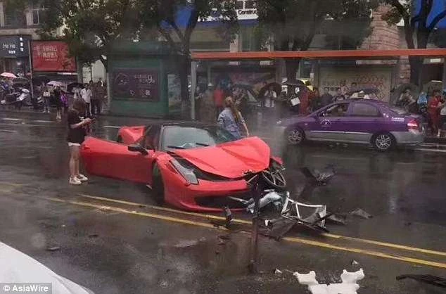 Sự việc diễn ra tại TP Ôn Lĩnh, tỉnh Chiết Giang, Trung Quốc khi một phụ nữ điều khiển một chiếc Ferrari 458 trị giá 500.000 bảng (tương đương 15 tỉ đồng), lạc tay lái rồi đâm sầm vào một con lươn trên phố và húc thẳng vào đầu một chiếc xe khác. Được biết phụ nữ này vừa thuê con siêu xe này mới được vài phút thì đã gây ra vụ tai nạn trên.