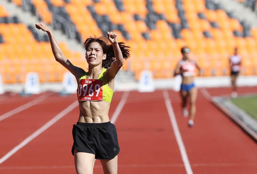 VĐV Phạm Thị Huệ giành HCV nội dung chạy 10.000 m nữ. Ảnh: MINH QUANG
