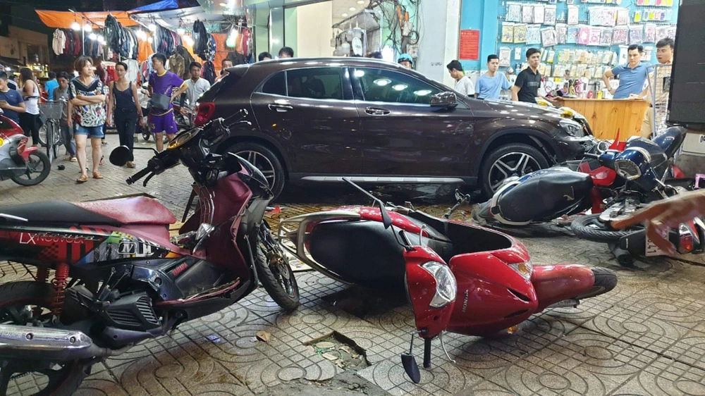 "Những người bị thương nằm la liệt cùng các mảnh vỡ xe máy trên đường và vỉa hè, họ rên rỉ kêu cứu" - một nhân chứng ở hiện trường cho hay. Nữ tài xế sau đó mở cửa bước ra, lánh mặt.