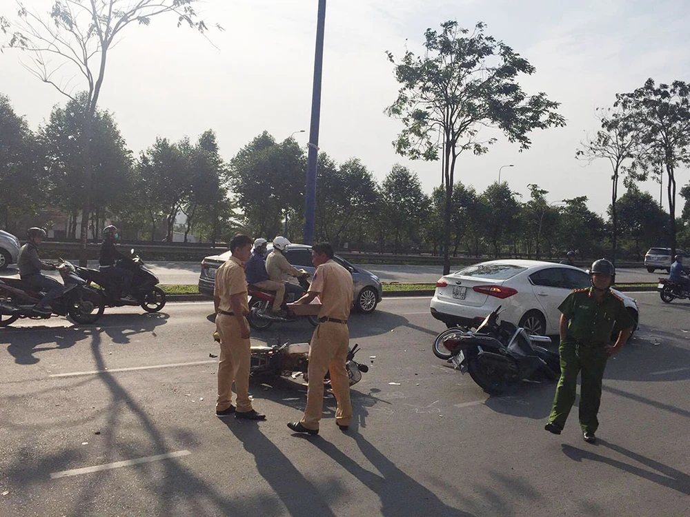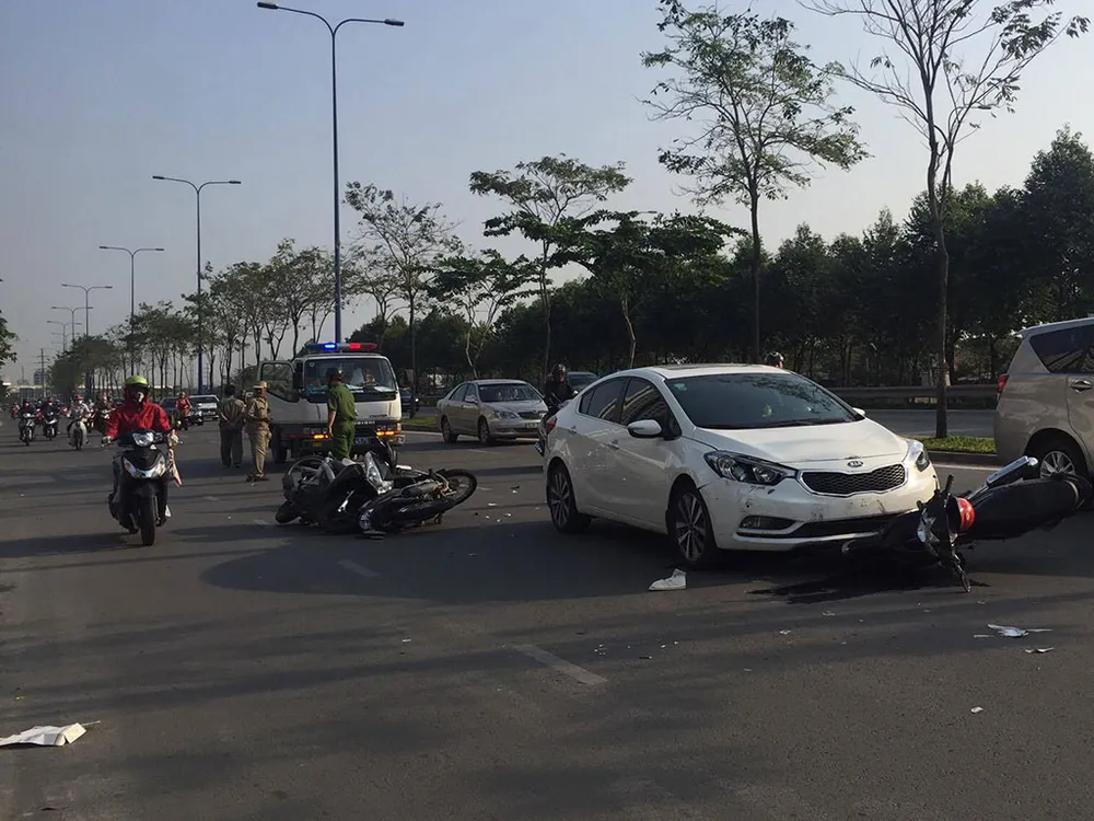 Thông tin ban đầu, sáng 10-2, xe ô tô bốn chỗ do một phụ nữ khoảng 40 tuổi điều khiển lưu thông trên đại lộ Mai Chí Thọ theo hướng về hầm Thủ Thiêm. Khi cách giao lộ Lương Định Của khoảng 500 m (phường An Phú, quận 2), chiếc xe này thì húc vào bốn xe máy chạy cùng chiều phía trước.
