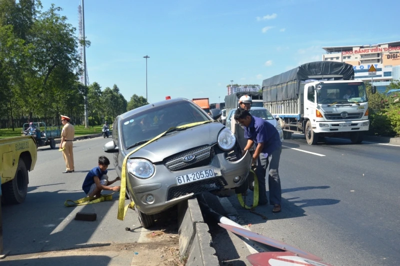 10 giờ sáng 28-12, một nữ tài xế điều khiển xe ô tô bốn chỗ biển số Bình Dương lưu thông trên quốc lộ 1A theo hướng từ ngã tư An Sương về giao lộ Nguyễn Văn Quá. Khi qua cầu vượt Quang Trung khoảng 100 m thì bất ngờ mất lái, chiếc xe tăng tốc lao lên đâm gãy biển báo giao thông rồi lao lên dải phân cách giữa làn đường ô tô và xe máy.