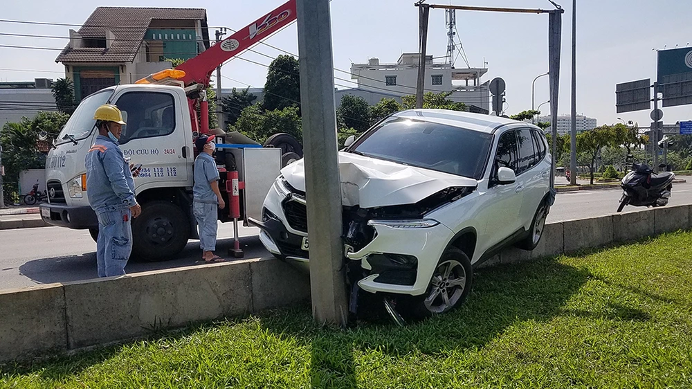 Đến đầu giờ chiều ngày 5-12, Công an quận 8, TP.HCM hoàn tất công tác xử lý hiện trường vụ xe ô tô tông vào cột điện trên đường Võ Văn Kiệt.
