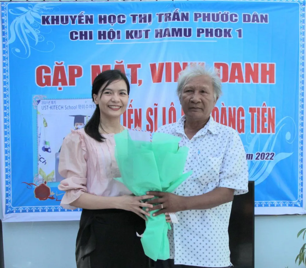 Theo sự hướng dẫn của ông Từ Công Bánh, Chi hội trưởng Chi hội Khuyến học tộc họ Kut Hamưphok (nhánh 1), chúng tôi tới làng dệt thổ cẩm Chăm Mỹ Nghiệp, thị trấn Phước Dân, huyện Ninh Phước (Ninh Thuận). Hôm nay tộc họ của ông tổ chức gặp mặt bà con họ hàng để vinh danh một người con trong dòng tộc vừa bảo vệ thành công luận án tiến sĩ ở Hàn Quốc đạt điểm hạng nhất tuyệt đối, được nhà trường khắc bảng vàng lưu danh.