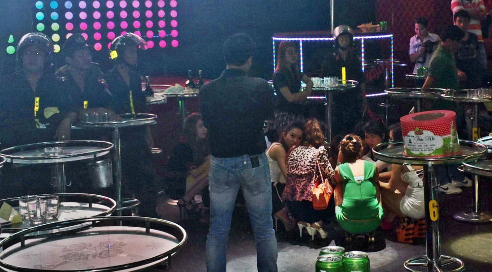 Các tiếp viên nữ và khách ngừng nhảy nhót khi đoàn kiểm tra liên ngành ập vào kiểm tra quán bar