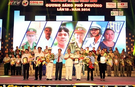 | Tại buổi giao lưu “Gương sáng phố phường” lần thứ 15 còn tôn vinh những người dân nổi bật trong phong trào toàn dân bảo vệ an ninh Tổ quốc. Đó là ông Lương Tấn Hằng, chủ đội lân Hằng Anh Đường (quận 11), dẫn dắt trên 1.000 em, phần lớn là trẻ lang thang, cơ nhỡ có chỗ ăn ở, việc làm ổn định. Anh Huỳnh Thanh Trang, chủ nhà trọ ở khu phố 10, phường Bình Trị Đông, quận Bình Tân, lấy giá trọ chỉ bằng một nửa nơi khác, luôn thấu hiểu và đảm bảo an ninh trật tự cho người ở trọ. Chị Nguyễn Thị Thanh Thới, ông Trần Văn Hoàng là những người dân dũng cảm tham gia bắt cướp, tội phạm. |