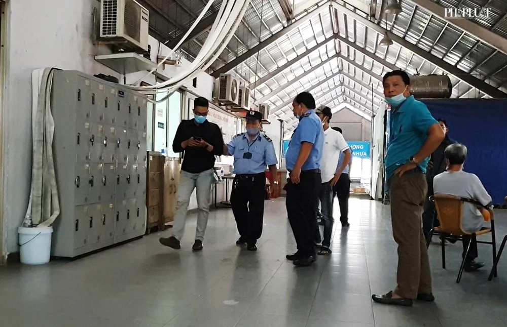 Hiện trường được phong tỏa hoàn toàn, lực lượng bảo vệ chợ yêu cầu các phóng viên ra khỏi khu vực, xóa ảnh. Ảnh NT