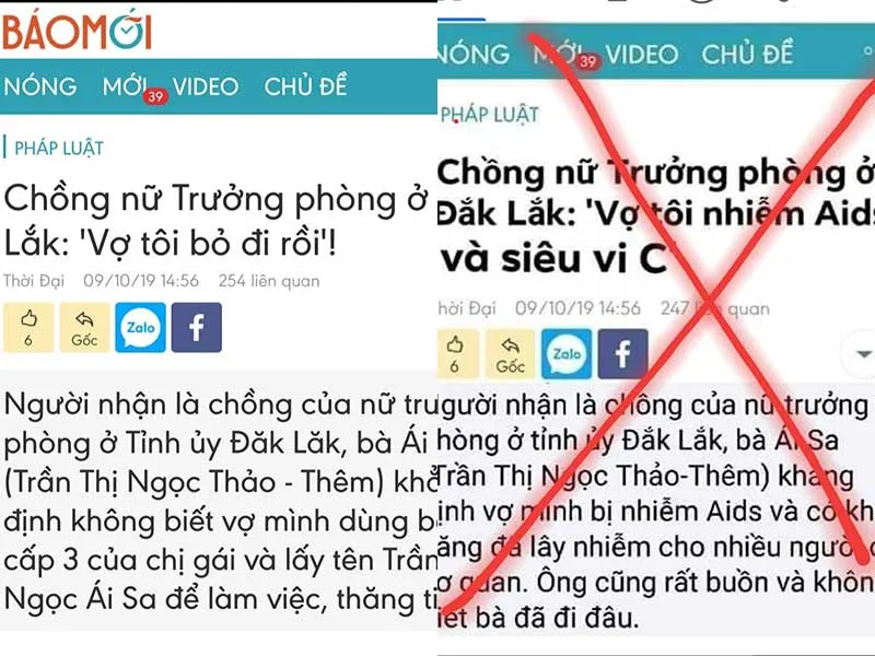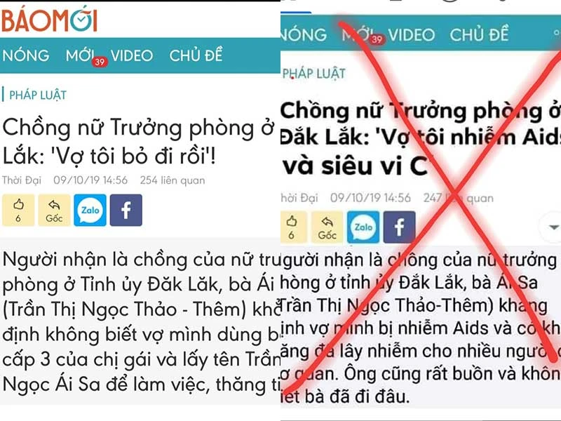 Thế nhưng thông tin trên đã bị ai đó tự ý chụp màn hình bài báo và chỉnh sửa lại dòng tít thành “Chồng nữ trưởng phòng ở Đắk Lắk: Vợ tôi nhiễm AIDS và siêu vi C”. Nội dung mở đầu bài bị chuyển thành: “Người nhận là chồng của nữ trưởng phòng Tỉnh ủy Đăk Lăk… khẳng định vợ mình bị nhiễm AIDS và có khả năng đã lây nhiễm cho nhiều người ở cơ quan. Ông cũng rất buồn và không biết bà đã đi đâu”.