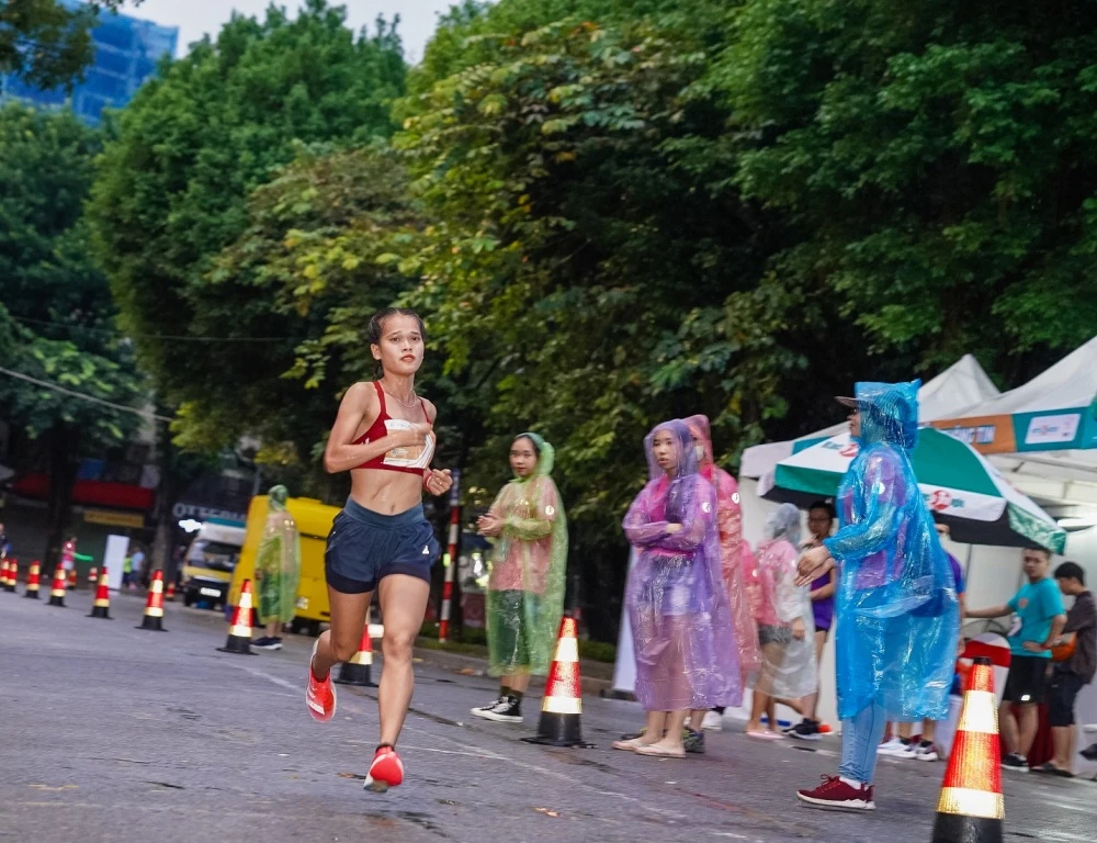 Nữ VĐV Phạm Thị Hồng Lệ trên đường chạy. Ảnh VT