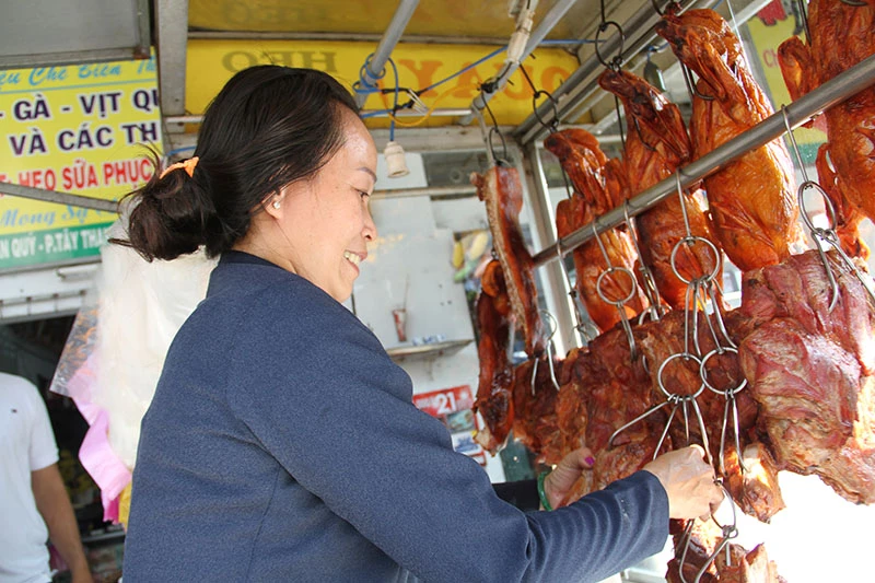 Tại chợ Kiến Thiết (quận 9, TP.HCM), chị Lê Thị Quỳnh Ni (người dân sống ở quận 9) phải tranh thủ đi sớm để mua thịt heo quay. “Phải đi thật sớm, chứ không người ta bán hết rồi không có mà mua. Năm ngoái, tôi tranh thủ đưa bé đến trường xong là chạy ra chợ ngay mà còn phải đứng xếp hàng rất lâu mới mua được” - chị Quỳnh Ni nói.