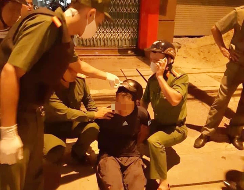 Ngay lập tức công an có mặt, khống chế tên T.V.V (30 tuổi, trú phường Nghĩa Chánh).