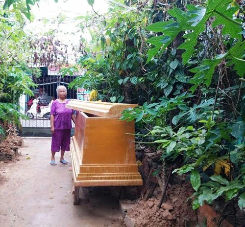 Sáng hôm sau, tôi phải nhờ hàng xóm phụ giúp đưa chiếc quan tài vào vườn nhà và trình báo với Công an phường Kim Long".