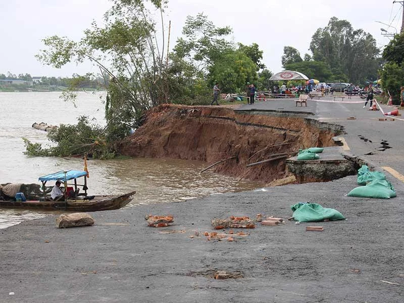 Báo cáo tình hình sạt lở, ông Trần Anh Thư, Phó Chủ tịch UBND tỉnh An Giang, cho biết tại vị trí sạt lở cách bờ 70 m có hố xoáy -25 m, có hiện tượng dốc đứng.