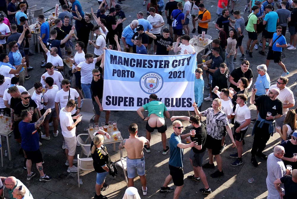 Hai lực lượng fan Anh của Chelsea và Man. City đã choảng nhau tại Porto trước trận chung kết Champions League giữa Manchester City và Chelsea. Ảnh: Getty