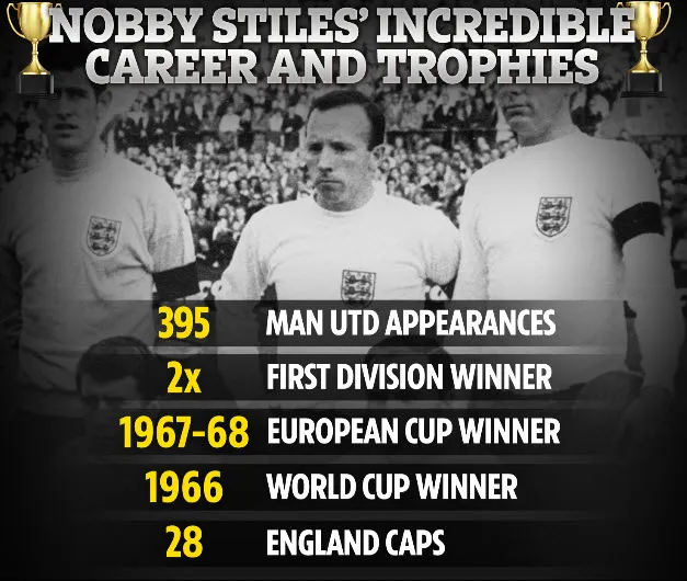 Đêm qua (30-10), gia đình của cựu tiền vệ Manchester United Nobby Stiles thông báo Stiles đã qua đời sau thời gian dài chống chọi với bệnh tật.