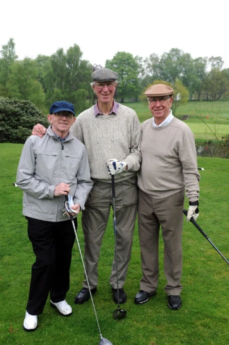 Stiles chơi golf cùng Jack và Bobby Charlton. ẢNH: REX