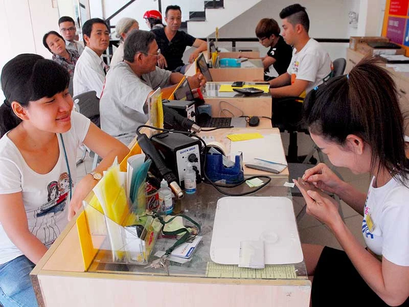 Khách hàng đang mua điện thoại tại cửa hàng Thế Giới Di Động ở TP.HCM. Ảnh: HTD