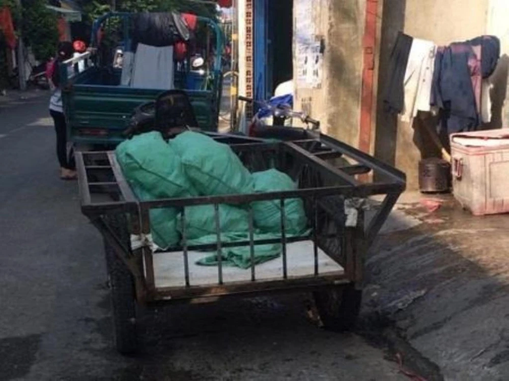 Nước đá đựng trong bao đan bằng sợi PP và vận chuyển trên phương tiện không đảm bảo an toàn. Ảnh: Ban An toàn thực phẩm TP.HCM