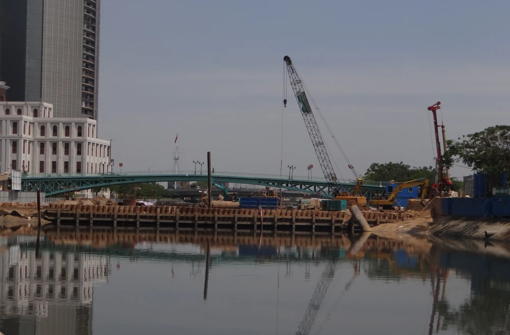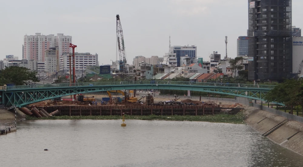 Theo ghi nhận của đoàn kiểm tra do UBND quận 4 tổ chức, dòng chảy trên kênh Bến Nghé hiện đang bị ngăn lại để thi công công trình kiểm soát triều. Đây là công trình thuộc dự án chống ngập triều giai đoạn 1 (gọi tắt là dự án ngăn triều, có kinh phí gần 10.000 tỉ đồng)