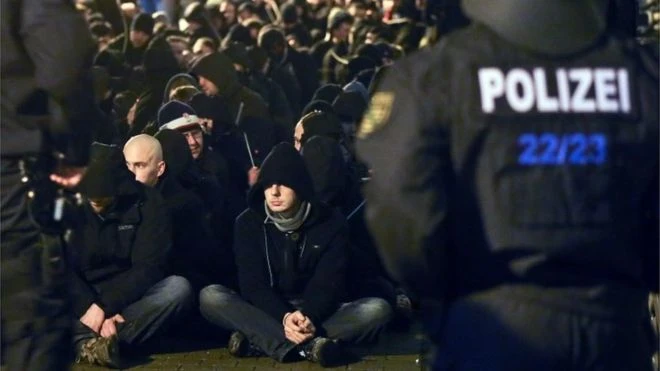 Phía cảnh sát cho hay ngay khi cuộc biểu tình diễn ra thì một nhóm những thành phần quá khích đã gây náo loạn tại Connewitz, một địa điểm theo phe cánh tả.