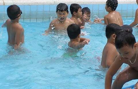 Những ngày nắng nóng vừa qua, số trẻ em đi tắm hồ bơi ở TP.HCM tăng nhiều. Nhiều phụ huynh lo ngại số trẻ tắm đông làm chất lượng nước giảm có thể lây lan các bệnh ngoài da và mắt.