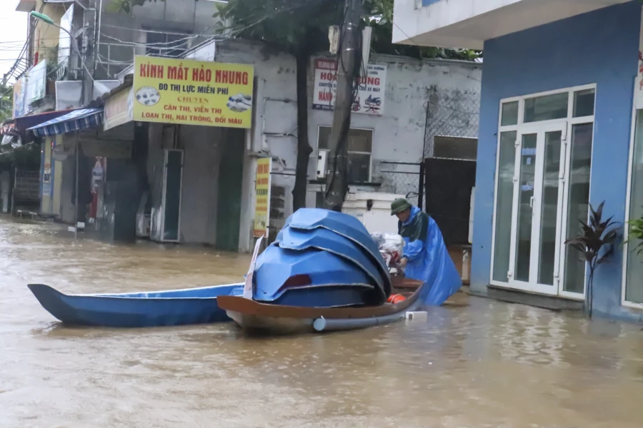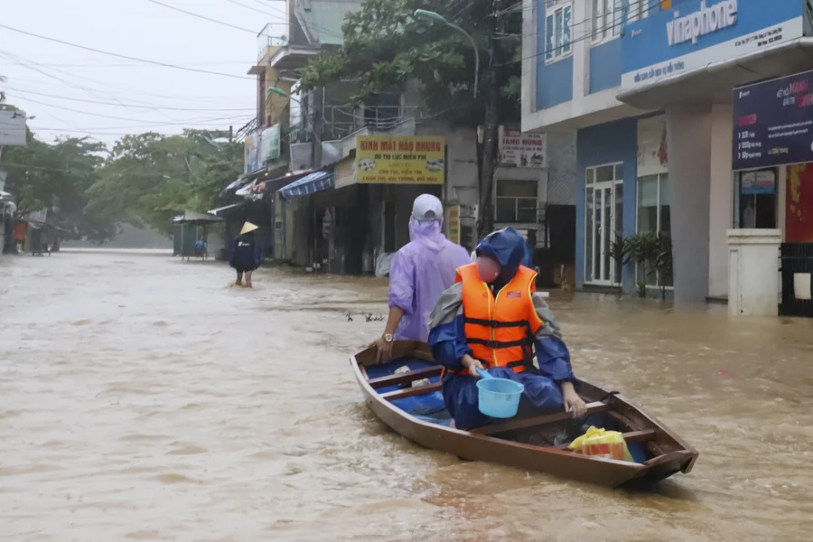 Ngoài việc phòng chống COVID-19 thì người dân Quảng Bình-Quảng Trị còn phải chạy lũ. Ảnh: ND